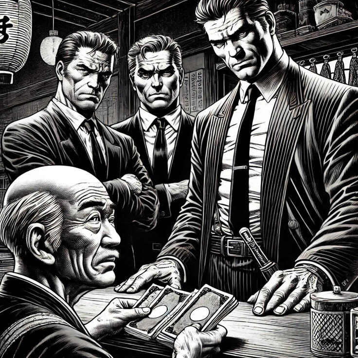 Japan's second-largest yakuza organization, controls territories in upscale districts like Kabukichō and Ginza, with shops often paying "mikajime-ryō" protection fees. Unlike the centralized Yamaguchi-gumi, the Sumiyoshi-kai operates as a federation as a federation of smaller gangs, delegating power to affiliate clan leaders. Founded in 1958